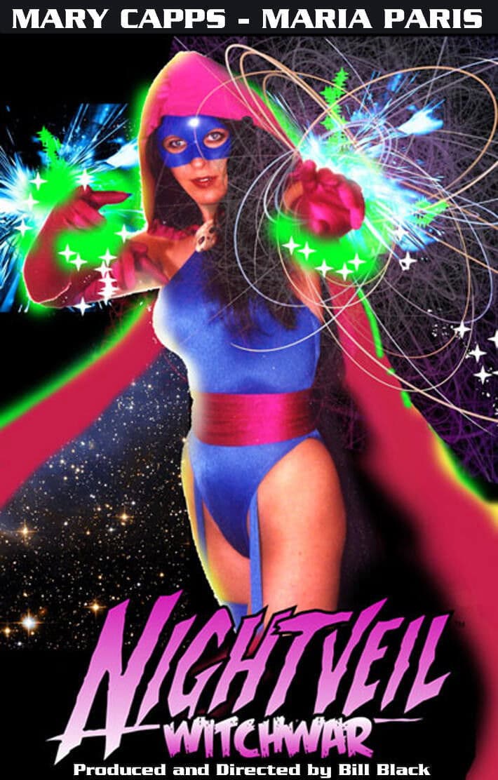 Nightveil: Witchwar is a full-color, live-action movie that brings AC Comics popular Femforce character Nightveil to life, in a wild, way-out feature-length movie that recounts her origin (see her learn the ways of sorcery from the other-worldly wizard known as Azagoth, and evolve from the two-fisted crimefighter known as Blue Bulleteer, into Nightveil, Sorceress Supreme!!)